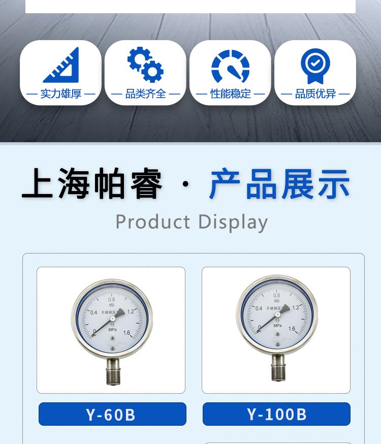 Y-100B-F/Y-100B-FZ不锈钢压力表 多年专注 产品好 发货快 售后完善 品牌 | 上海自动化仪表四厂 | ||
