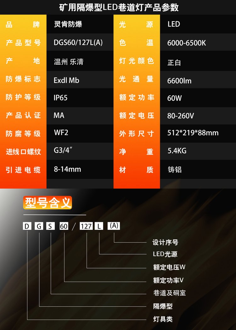 矿用隔爆型巷道灯 大功率矿灯DGS20/127L(A)井下防爆型LED照明灯 品牌 | 灵肯防爆 | ||