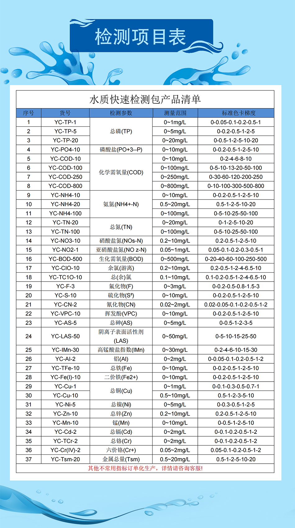 测量对象 | 污水指标 | ||