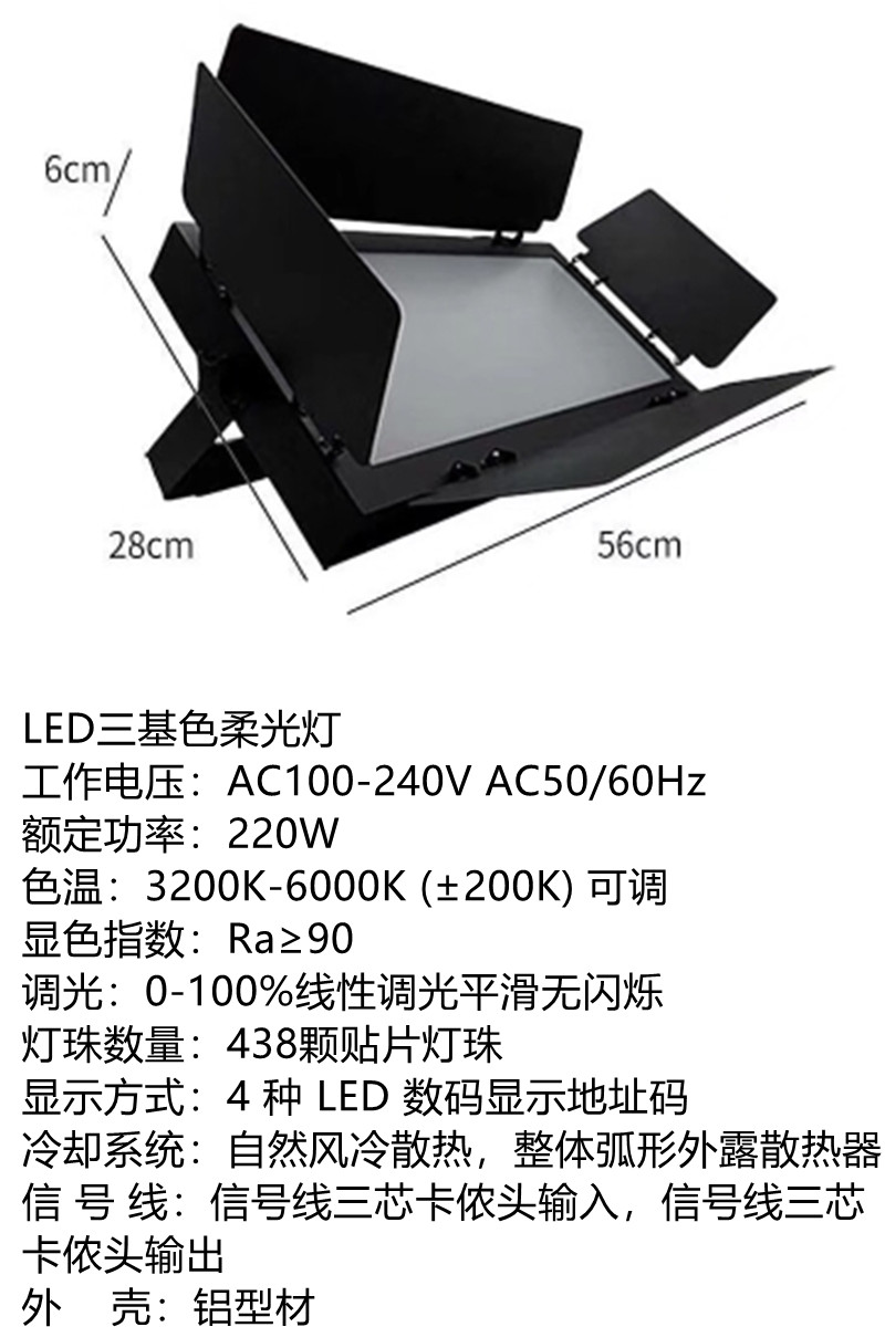 200W平板柔光灯/炫展灯光XZF623演播室LED影视灯摄影灯 电压220V