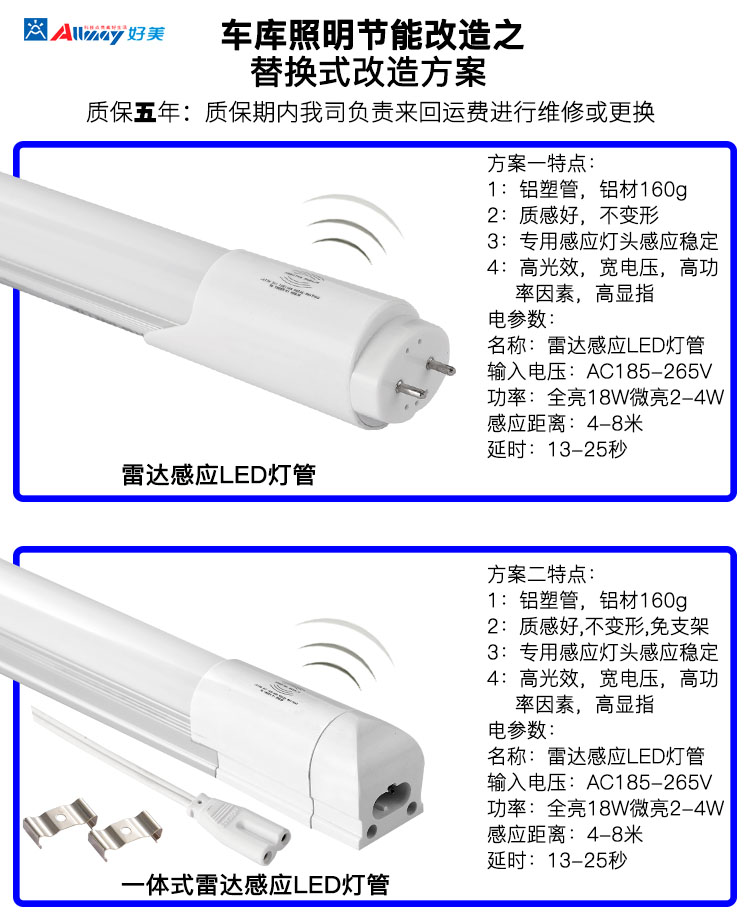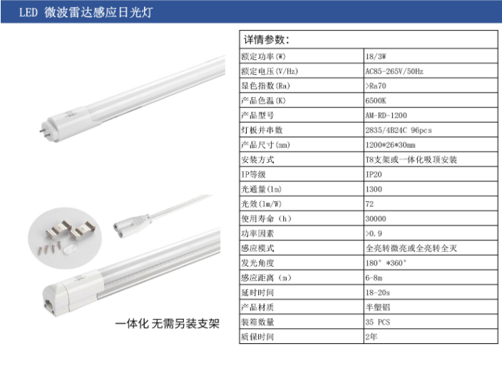微波雷达感应 T8日光灯管 地下车库 节能改造专用 18W/3W 厂家直供 LED灯珠颗数 | 96 | ||