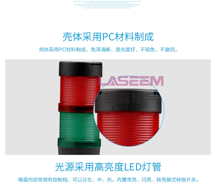 5、适于用恶劣环境下正常工作警示灯通常是用在机械设备等开发。一般情况下,用处可以提供多样的长度的产品的,有灯罩组合的构造,需要时一边方向的灯罩可以组合复合颜色。此外,还可以根据光源形式的不同,分为:1灯泡旋转灯;2LED闪光灯;3氙气灯管频闪灯,其中LED闪光形式的是灯泡旋转形式的升级版,使用寿命更长,更节能,更环保!