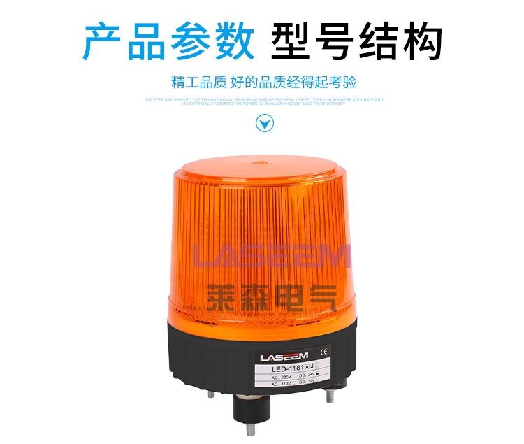 5、适于用恶劣环境下正常工作警示灯通常是用在机械设备等开发。一般情况下,用处可以提供多样的长度的产品的,有灯罩组合的构造,需要时一边方向的灯罩可以组合复合颜色。此外,还可以根据光源形式的不同,分为:1灯泡旋转灯;2LED闪光灯;3氙气灯管频闪灯,其中LED闪光形式的是灯泡旋转形式的升级版,使用寿命更长,更节能,更环保!