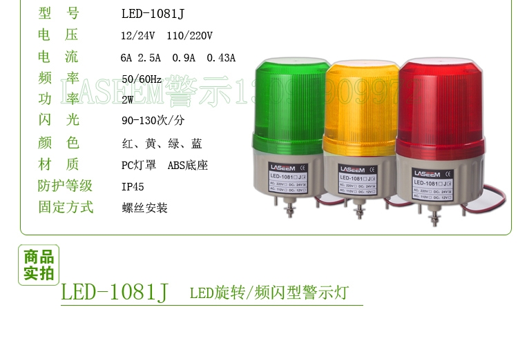 LED-1081J旋转式警告灯 四色可选声光一体警示灯12V24V220V