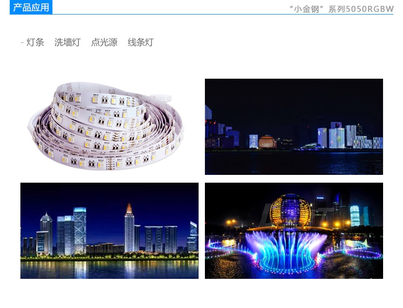 小金钢系列5050rgbw LED灯珠应用:灯条、洗墙灯、点光源、线条灯