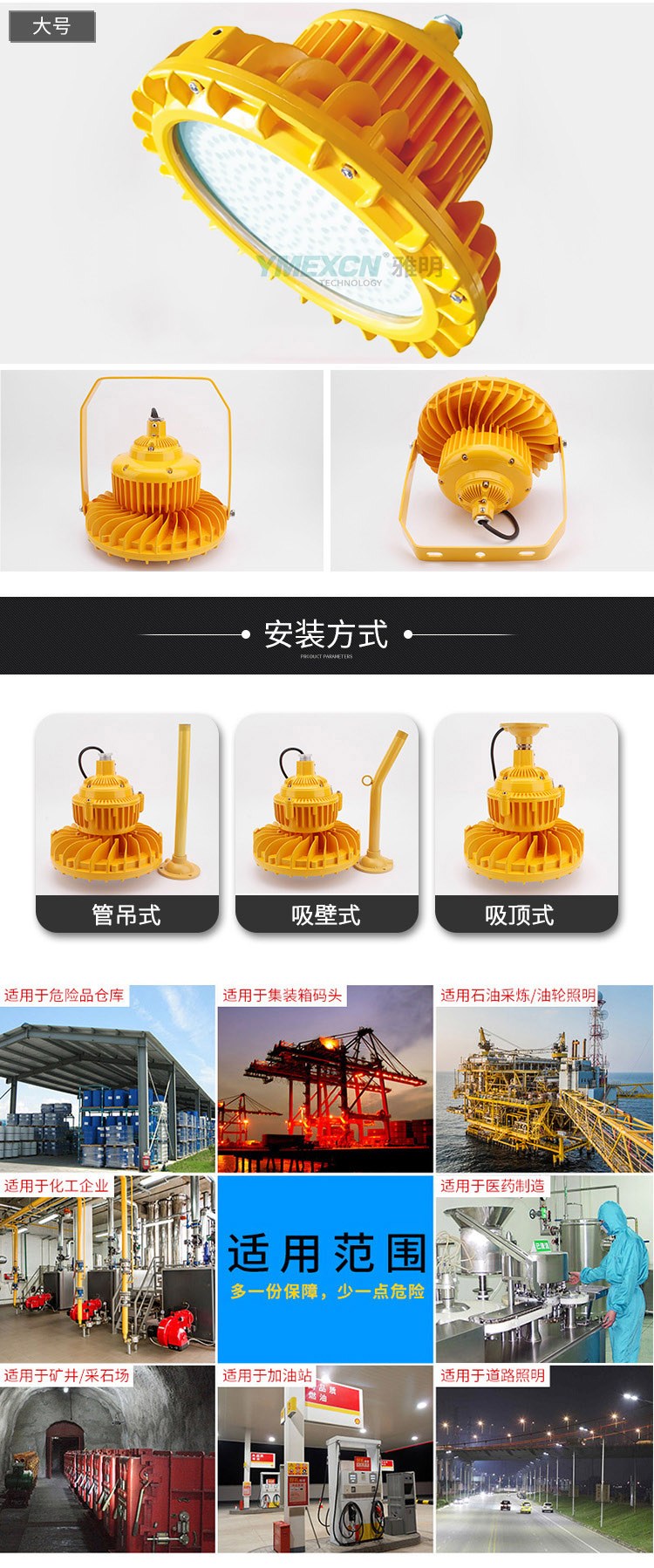 BZD-100w吸顶式防爆工矿灯LED防爆灯免维护工厂车间照明灯适用范围