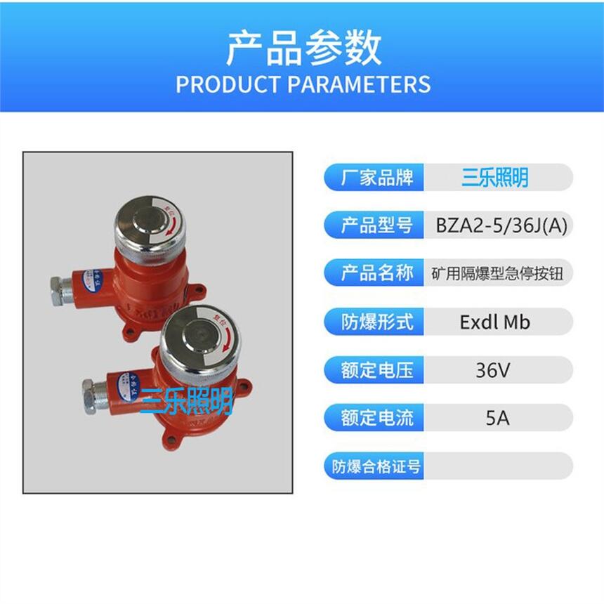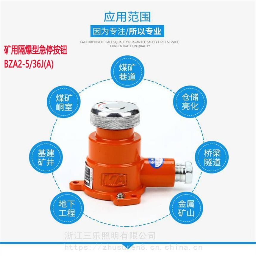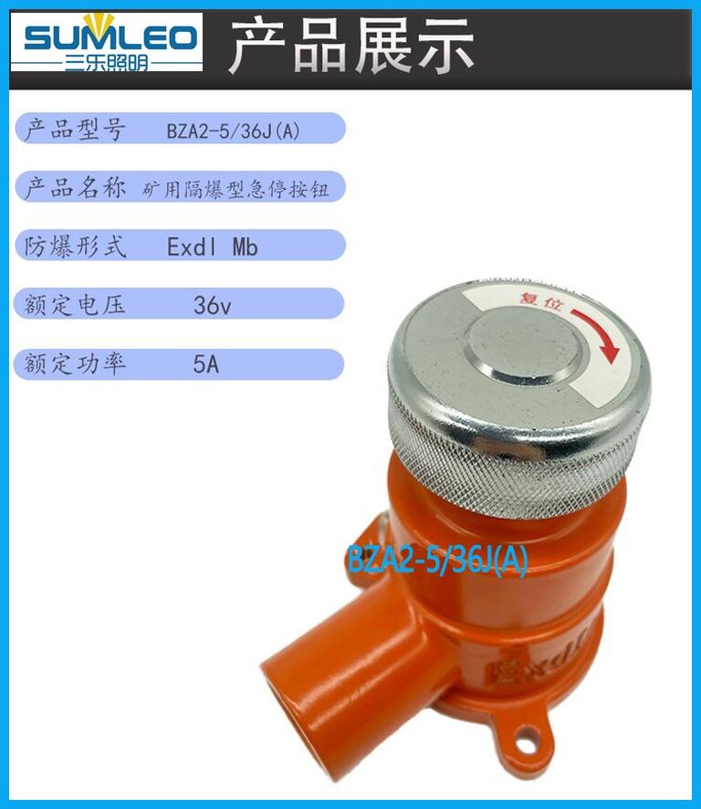 矿用急停按钮 BZA2-5/36J(A) 矿用隔爆型急停按钮(以下简称矿用急停按钮),主要适用于具有甲烷和煤尘爆炸危险的煤矿井下掘进机械上控制电器设备的紧急停止。