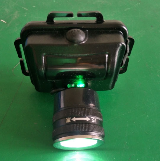 次头灯的开关按钮,工作光点亮;次,转换为强光;第三次,转换为闪烁;第四次,电源关闭。