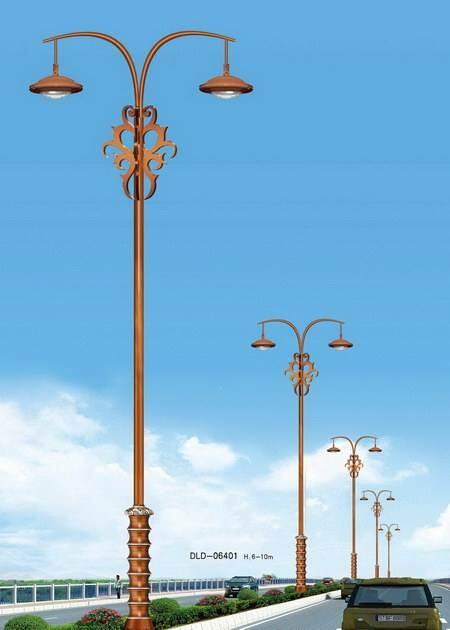 灯杆的高度应根据道路的宽度、灯具的间距,道路的照度标准确定。灯具外观要求不高,相对实用就行。