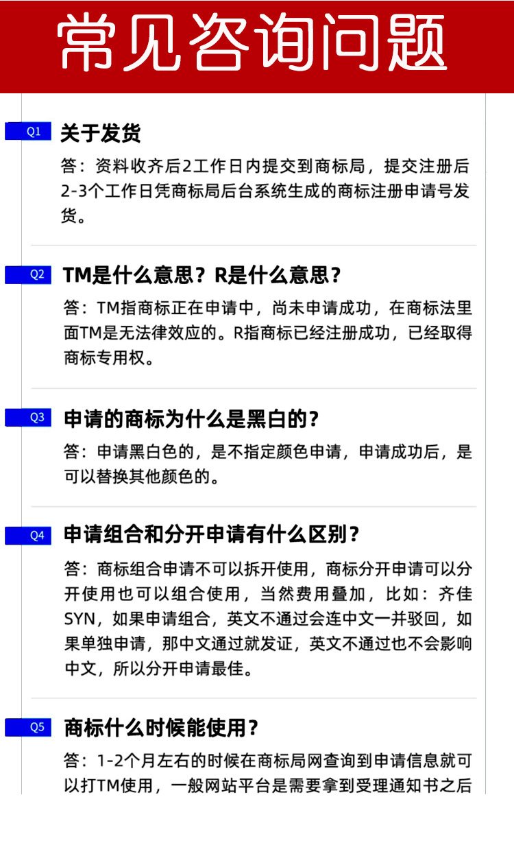 服务内容 | 商标注册 商标转让 商标续展 商标驳回复审 商标异议/答辩 补发商标注册证 商标宽展 商标变更 集体商标注册 证明商标注册 商标注销 | ||