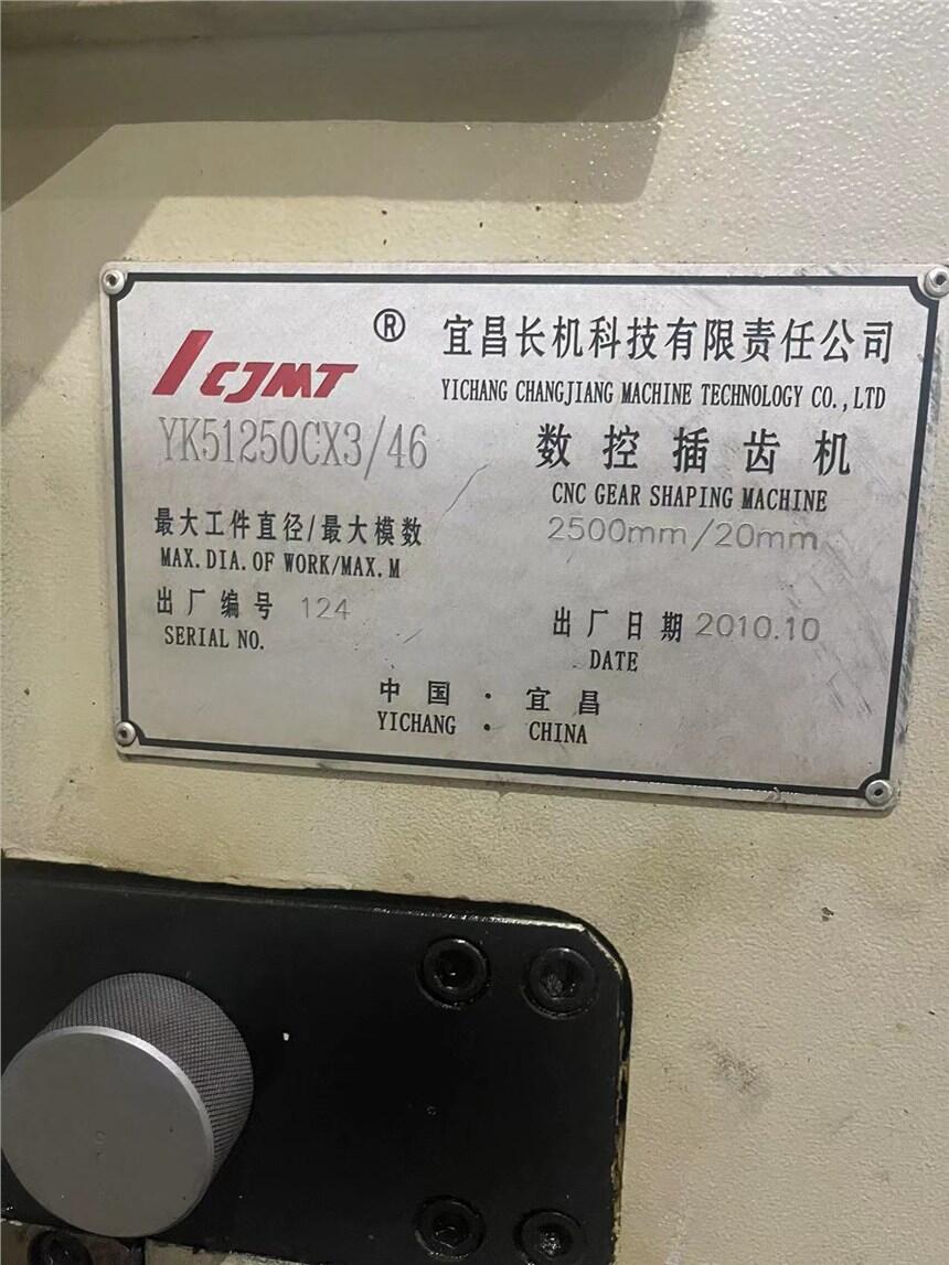 宜昌长机2.5米数控插齿机型号YK51250CX3加工外齿直径2500mm加工内齿直径2800mm加工模数20mm加工齿宽400mm插齿刀冲程长度420mm插齿刀冲程速度15~150str/min插齿刀让刀量≥0.5mm刀架提拉行程 -插齿刀行程位置调整量50mm插齿刀安装轴颈直径88.9/101.6mm刀轴直径140mm工作台面直径1800mm工作台孔径350mm工作台可倾斜角度 - 插齿刀轴心线至工作台轴心线距离240~1400mm机床主轴端面至工作台面距离480~950mm机床总功率45kw机床重量 44000Kg