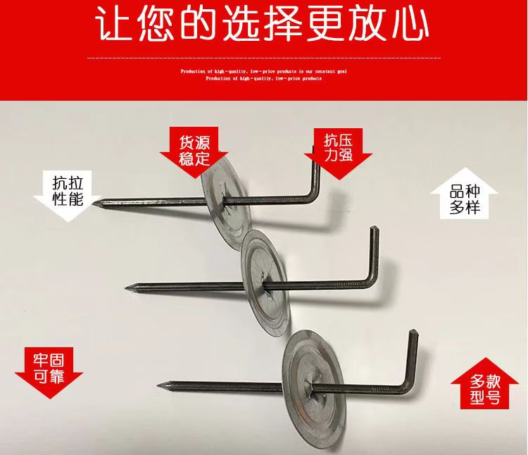耐热保温抓钉也称为保温钩钉,不要小看这小小的保温钉,它的用途优势是非常大的,具有,防腐蚀,防锈,防潮,拉伸性特别强,在保温层支撑的过程中不容易变形。我们选用的原材料都是品质的。