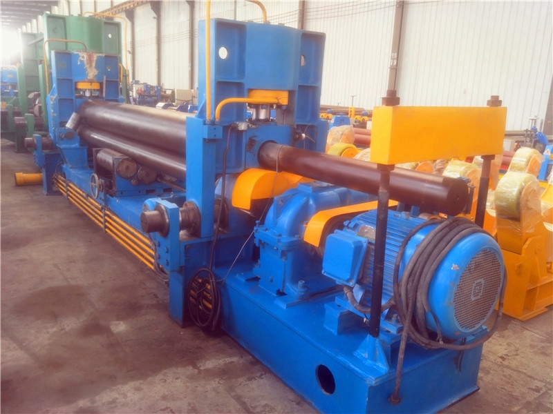 本设备可将板材弯卷成圆筒或圆锥筒,是锅炉、造船、石油、化工、水泥、电机及机械制造等行业的重要设备。本设备上辊可在垂直和水平两个方向上移动,当上辊对下辊呈非对称位置时可实现预弯,有效地解决剩余直边问题。