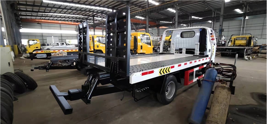 该车安装清障装置,用于托移道路故障车辆,城市违章车辆等工作;托举质量:500kg; 侧防护采用Q235材质螺栓连接在大梁上,后防护采用Q235材质焊接连接在大梁上,后防护截面尺寸(mm):100×50,离地高度(mm):440;选装后部样式;随底盘选装驾驶室;ABS型号/厂家:ABS/ASR-12V-4S/4M/襄阳东风隆诚机械有限责任公司. |