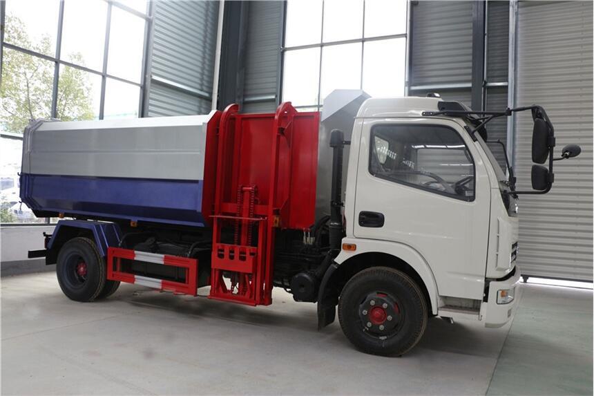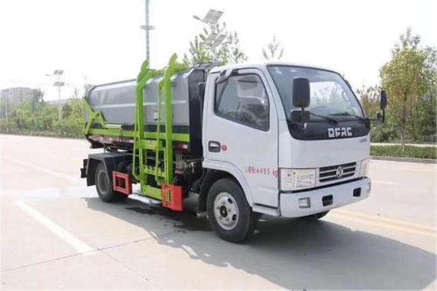 压缩式垃圾车专用部分由垃圾厢、污水箱、填装器、刮板、推铲、多路换向阀、液压系统、挂桶装置等组成。厢体材料为优质炭钢,厚度为5mm,装料机构由支架、连杆机构、凸轮、挂钩等组成,在油缸作用下,将垃圾桶内的垃圾自动翻转倒入料斗。挂桶式压缩垃圾车出售5方压缩垃圾车专用汽车之都。