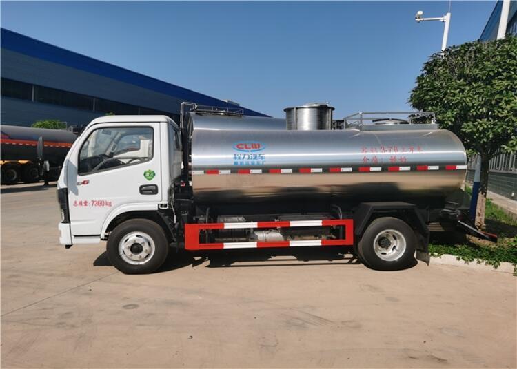 4、鲜奶运输车可根据用户需求将罐体设置为多仓,每个单仓有单独的卸料口(自流口)及加料口(罐口);