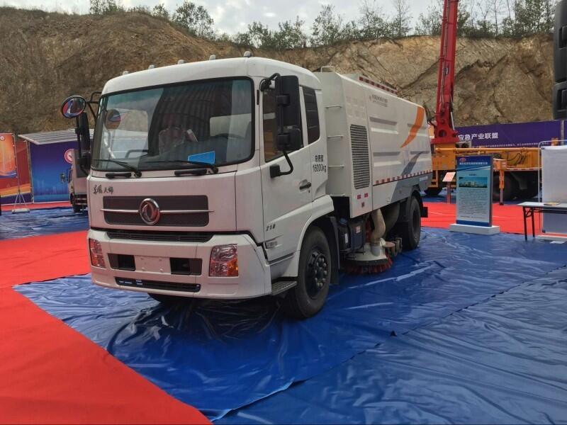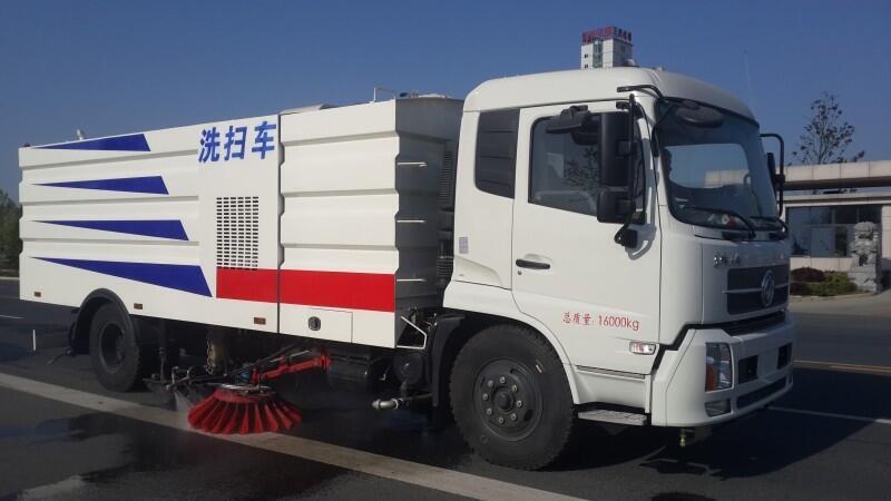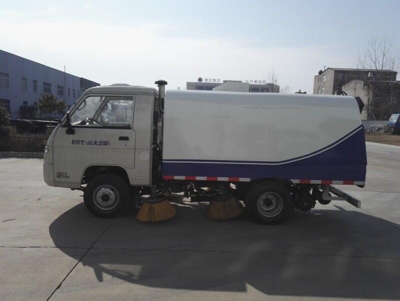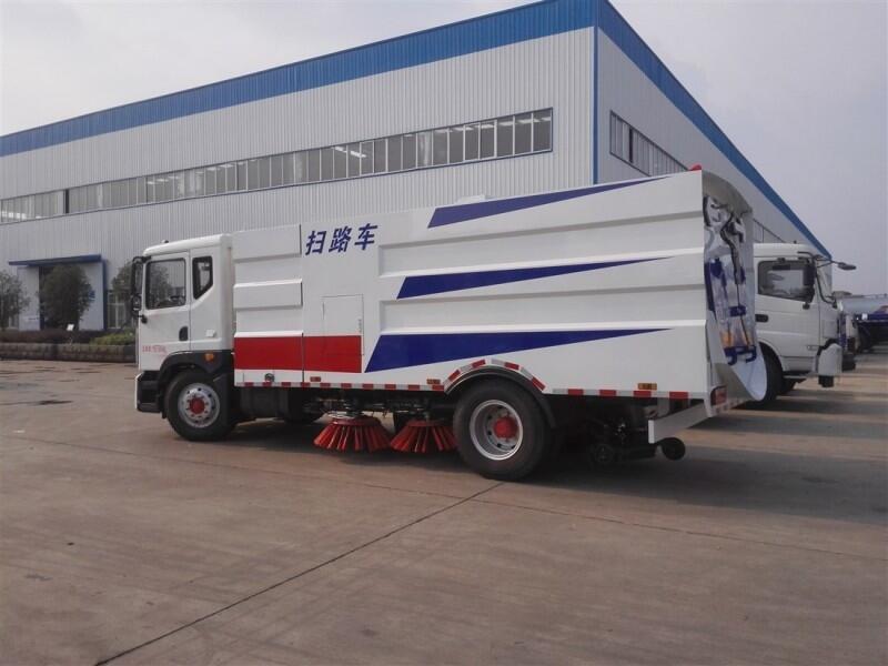 道路清扫车是集路面清扫、垃圾回收和运输为一体的新型高效清扫设备。简单的说就是在专用汽车底盘上改装道路清扫功能的扫地车型,车辆除底盘发动机外,另外加装一个副发动机,四把扫刷由液压马达带动工作,带风机、垃圾箱、水箱等多种配套设备。这种全新的车型可一次完成地面清扫、马路道牙边清扫、马路道牙清洗及清扫后对地面的洒水等工作,适用于各种气候和不同干燥路面的清扫作业。