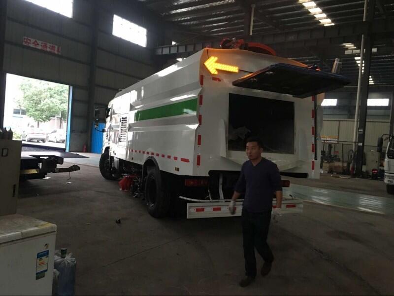 7.采用先进,高效的专用风机和可随路面自动找平的全浮动式吸嘴,清扫效果好,使用寿命长。上装标配:带4个扫盘、江铃副发动机、三洋马达、施耐德控制开关、海普瑞斯电磁阀组、无级变速自动离合器、免维护离心式自动风机、不锈钢垃圾箱、尾部LED箭头指示灯、手动泵应急系统、中联北极星电子水泵,垃圾举升自卸功能。