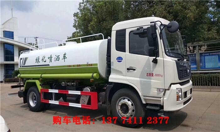 洒水车前冲(喷)后洒,带侧喷,罐体后带工作平台,平台上安装绿化洒水炮,洒水炮可旋转,可连续调成直冲状、大雨、小雨、毛毛雨,带安全护栏,配备全国质量评比名的杭州威龙大功率专用洒水泵,泵可自吸自排,安装过滤网,带消防接口,可通过消防栓进水,带自流阀,随车选装20米绿化卷盘,可喷洒农药,罐体金属漆。