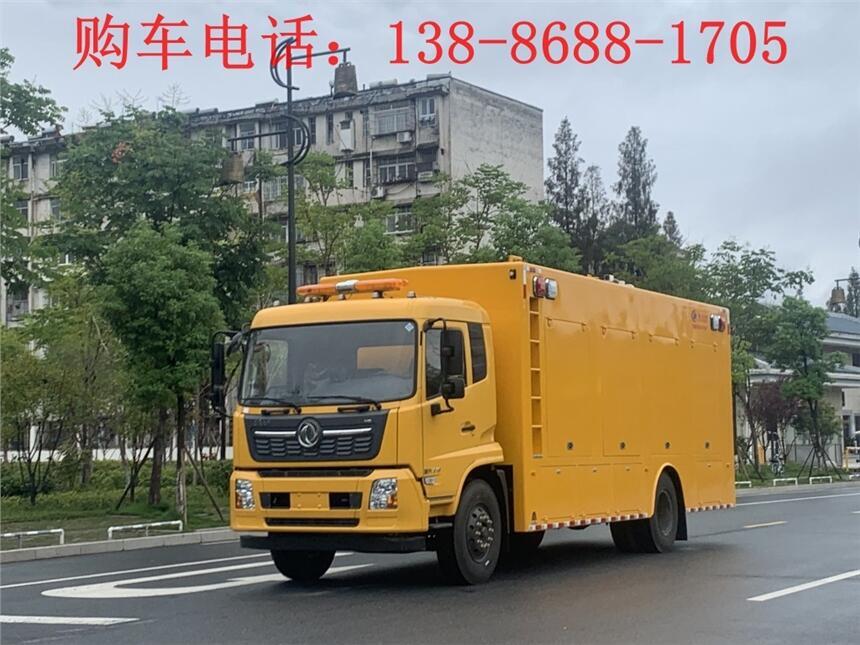设备采用东风底盘改装,总质量12.5吨,发动机功率127kw,排放标准达到国五标准,3.8米轴距,带空调,方向助力,涉水深度600mm。