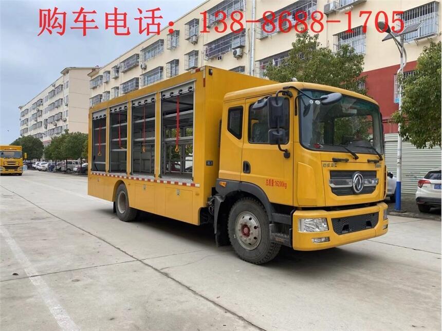 设备采用东风底盘改装,总质量12.5吨,发动机功率127kw,排放标准达到国五标准,3.8米轴距,带空调,方向助力,涉水深度600mm。
