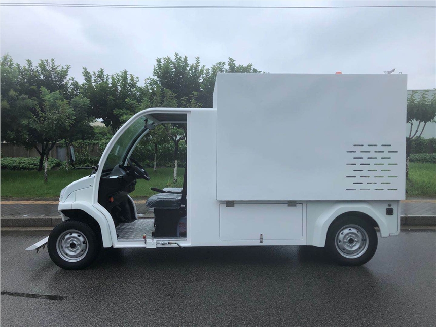 智能高压冲洗车,具备多功能冲洗作业能力,我公司产品常用于城际高铁站、航站楼、大学校园、高档商业广场、步行街道、、环卫等机构等,主要功能适用于城市街道路边广告清理、果皮箱和垃圾桶冲洗、地面污垢去除、人行街道、马路路牙、地砖还原本色、公交站牌冲刷、PM2.5空气尘埃颗粒抑制等。可配合小型扫路机共同作业,对人行道和辅道进行快速保洁,作业效率更高。车辆体积小巧,重量轻,通过性强,且不会对人行道地砖,井盖等其他公共设施造成损坏。车辆配有作业报警装置,以及夜间条,适合白天、夜晚作业。独有的“工作速度模式”、“水位报警装置”、“高低速调整”可提高作业安全系数,采用优质电动四轮车底盘操作简单,普通环卫工人即可操作。