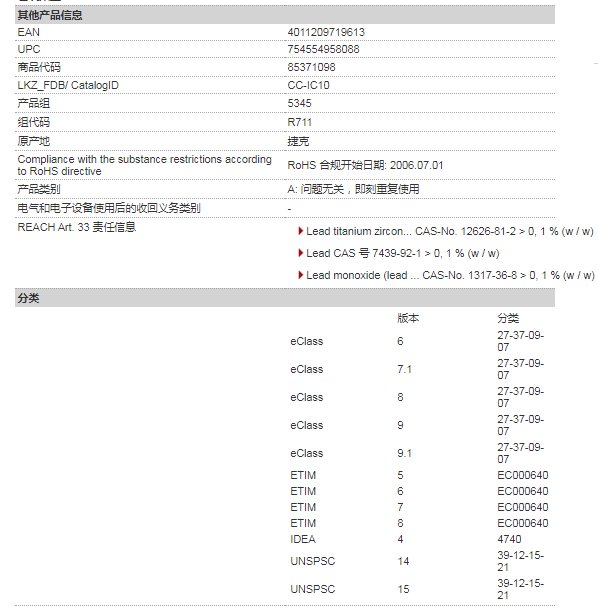 产品种类 | 电子元件 | ||