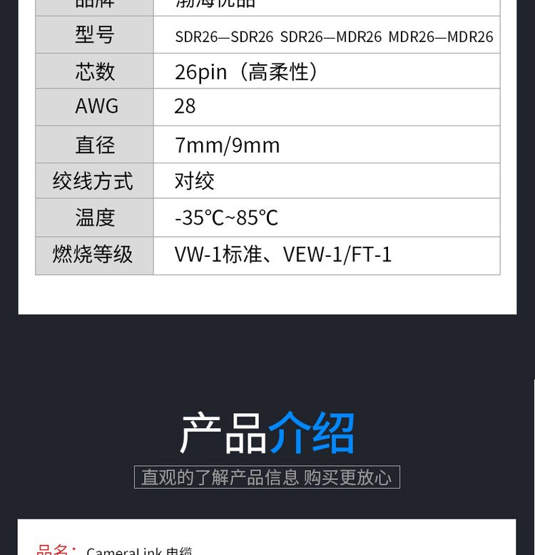 cameralink线缆工业相机网线MDR/SDR26P支持POCL供电 拖链电缆 品牌 | BOHAI | ||
