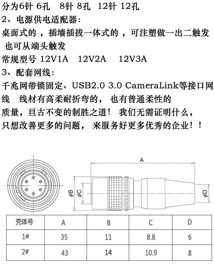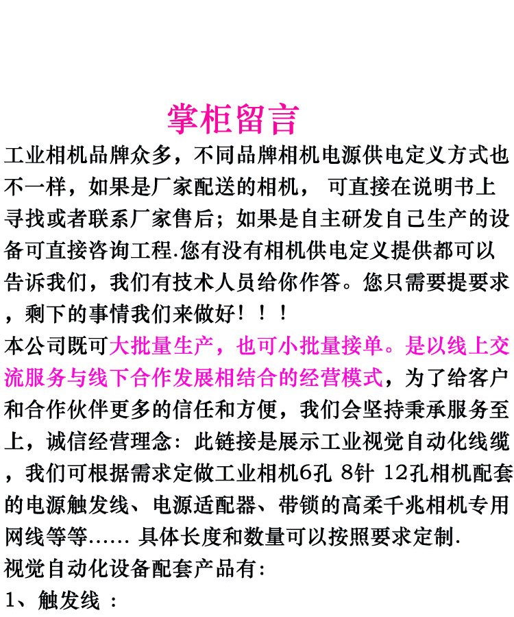 特性 | 兼容海康巴斯勒basler6芯高柔I/O电源线 | ||