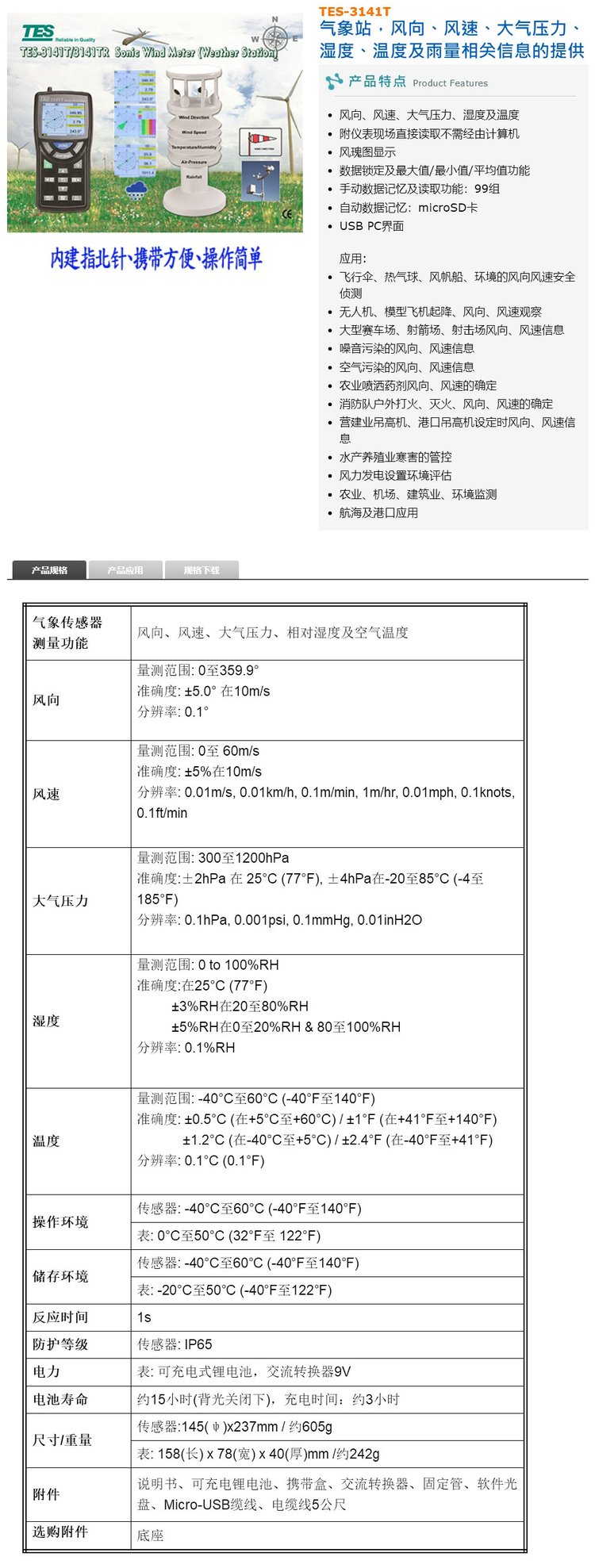 适用范围 | 风速测量 | ||