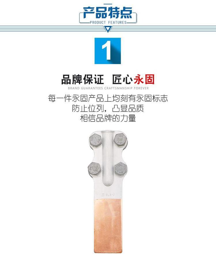 定型的铜铝过渡线夹采用闪光焊、摩擦焊和钎焊工艺方法制造。闪光焊工艺已纳入国家标准,摩擦焊早已广泛用于240mm2以下导线的接线端子制造。载流量1000A以下的设备线夹采用钎焊。载流量500A以下可以推广用覆铜铝板。这种材料可以节约大量铜材,铜材耗用量仅为闪光焊的1/5~1/8.