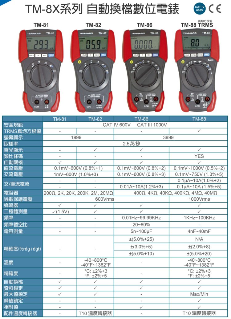 TM-82台湾泰玛斯TENMARS数位三用电表万用表数字式LCR/电容表 品牌 | 泰玛斯TENMARS | ||