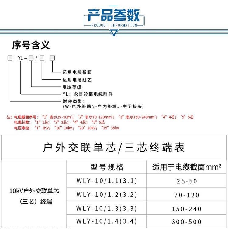 10KV冷缩电缆终端WYL-10/3.3永固三芯户外冷缩电缆头价格实惠 品牌 | 永固 | ||