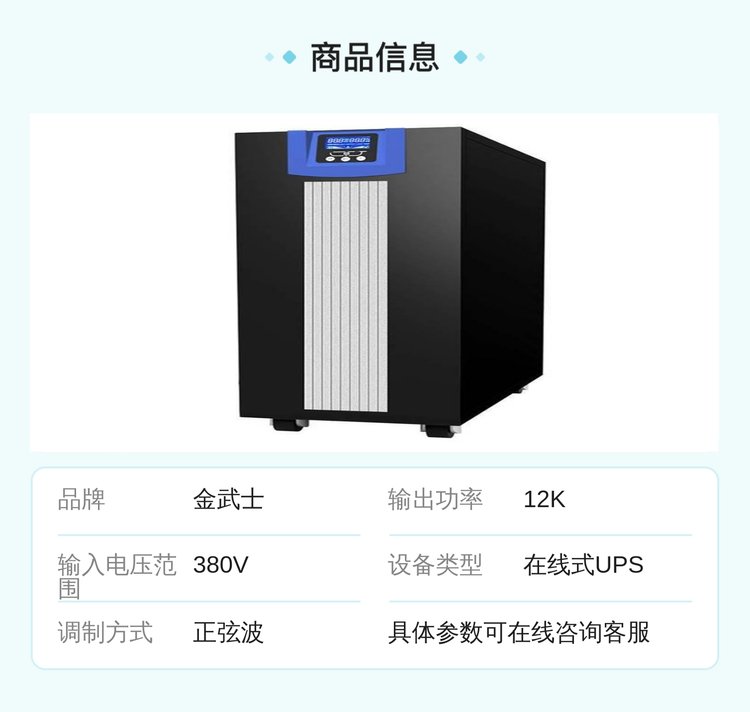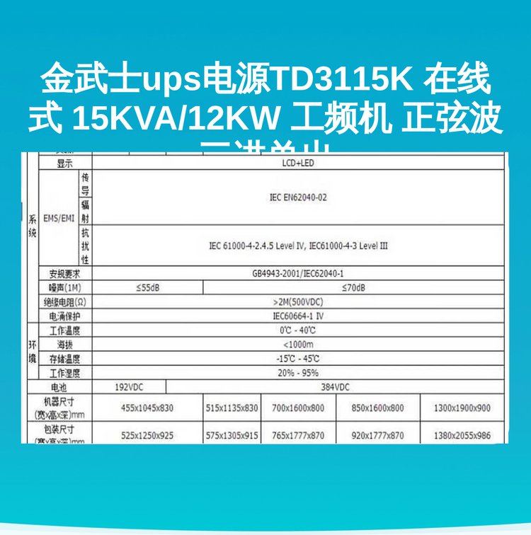 金武士ups电源TD3115K 在线式 15KVA/12KW 工频机 正弦波 三进单出 品牌 | 金武士 | ||