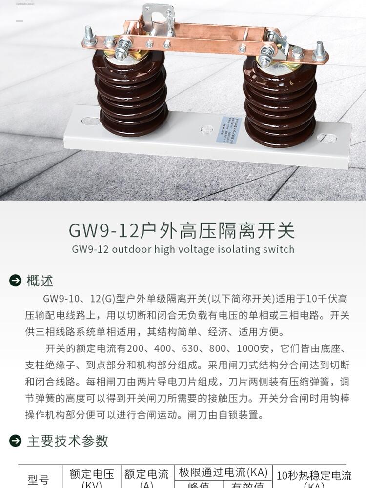 厂家供应GW9-10-400A/630A隔离开关户外高压刀闸开关