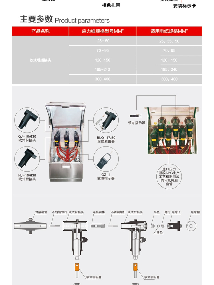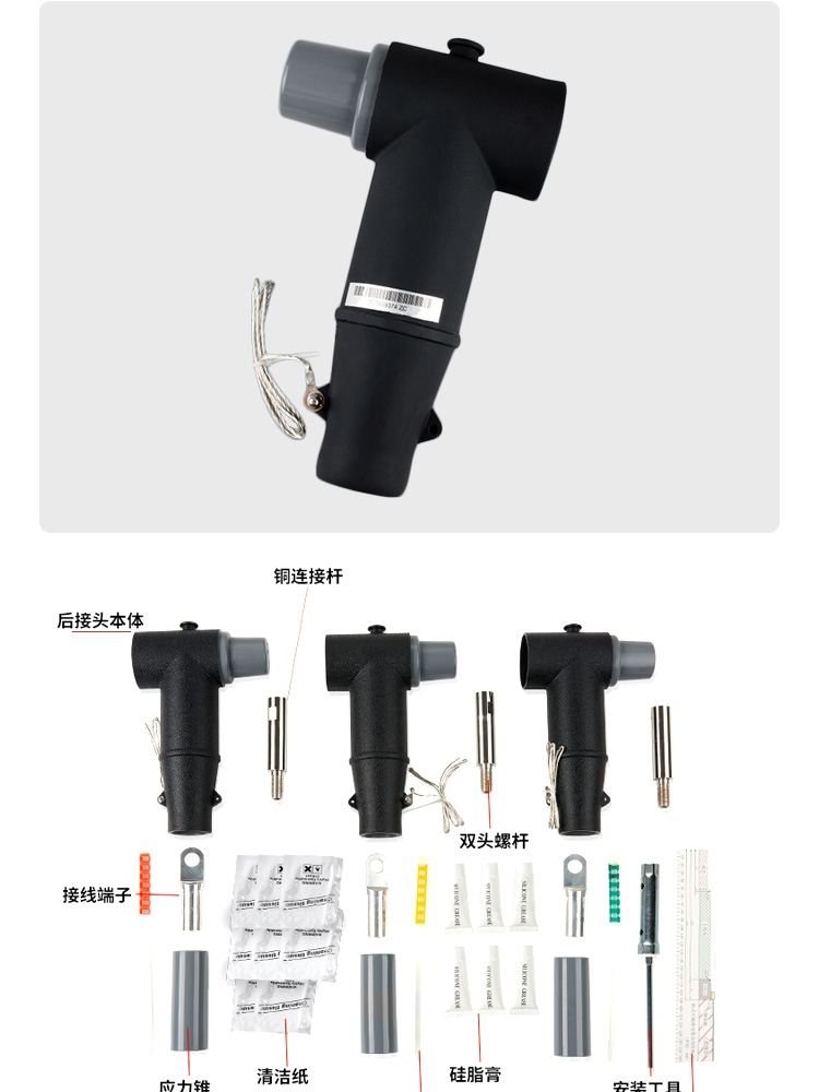 10KV欧式电缆后插头JBK-10/630电缆分支箱后接头T型可触摸屏蔽式