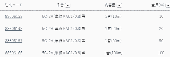 用途屋内引込み線、屋内配線、監視や防犯カメラ等、信号回路や高周波機器間の接続に使用。 ケーブル5C-2V 耐電圧1000V/分 材質(シース)PVC(塩化ビニル) 材質(絶縁体)PE(ポリエチレン) 静電容量67Nf/km 概算質量(kg/km)65 導体抵抗(Ω/km)(20℃)35.9 絶縁抵抗(MΩ/km)1000 シース色黒 導体構成(本/mm)1/0.8 導体外径(Φmm)外部1/5.4、外部2/- 絶縁体外径(mm)4.8 シース外径(Φmm)7.2 標準減衰量(dB/km)131(220MHz時)、263(770MHz時) 特性インピーダンス(Ω)75