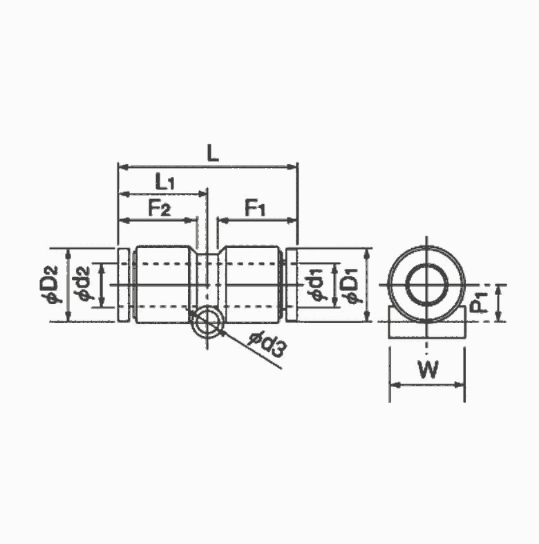 形状ユニオンコネクタ 使用流体空気(クリーンエア)、水(純水) 高使用圧力(MPa)0.7 (at20℃) 使用温度範囲(℃)(空気)-20℃~+80℃、(水)0℃~+80℃