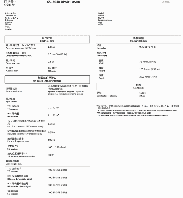 控制单元适配器 CUA32 用于功率模块 PM340/PM240-2 带增量编码器 HTL/TTL 接口