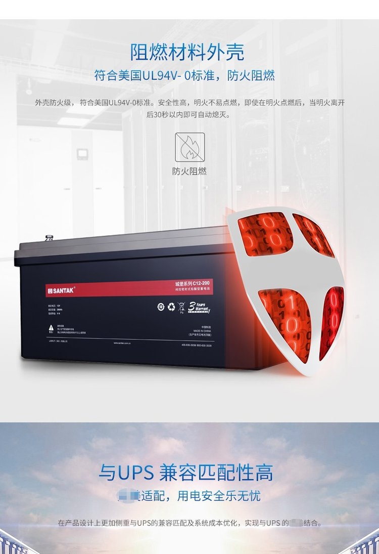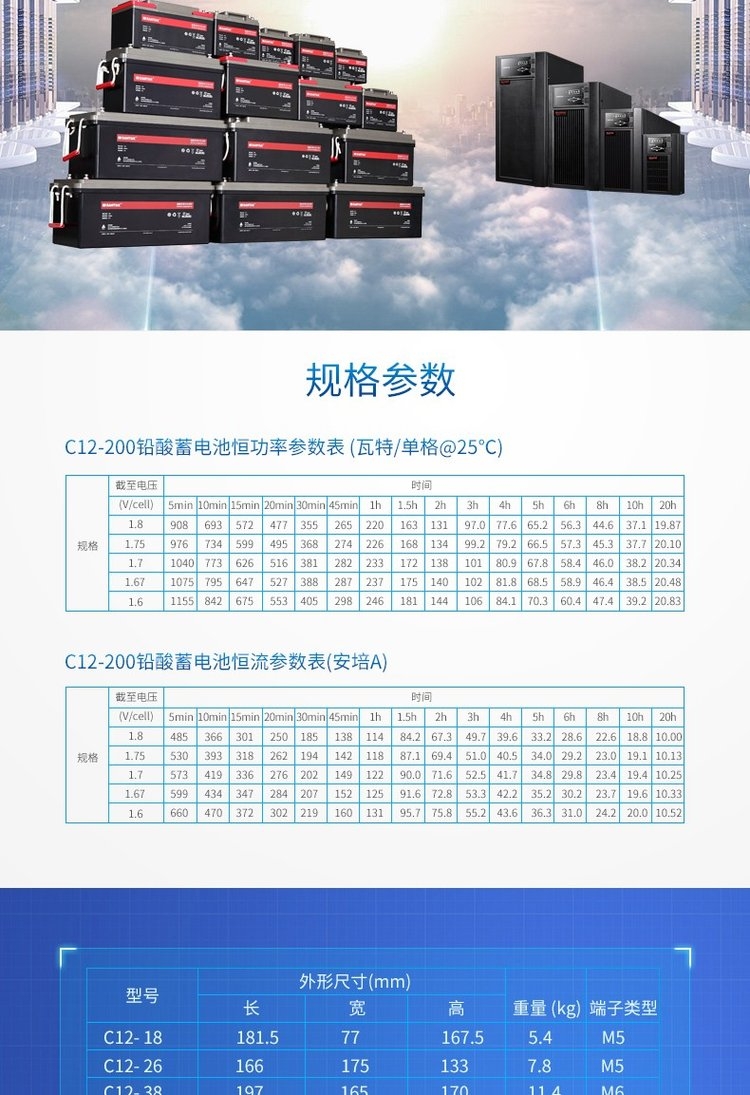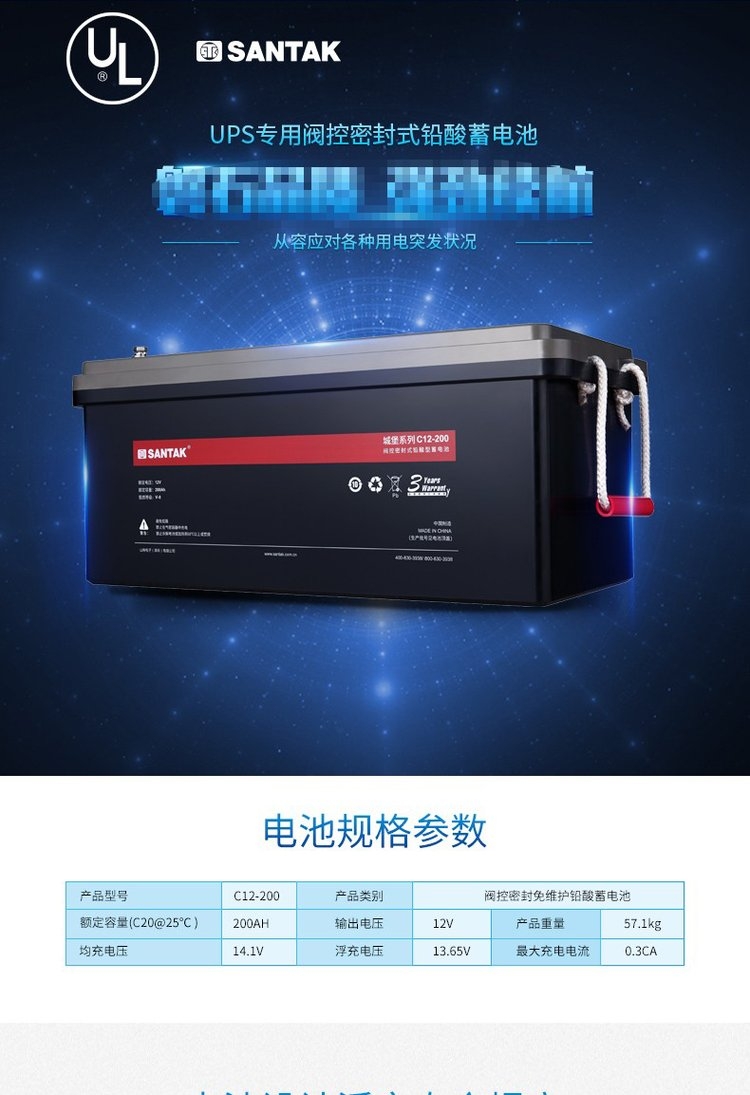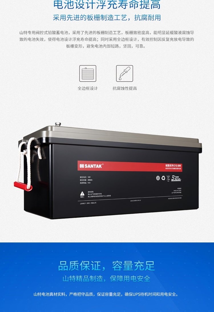 山特城堡蓄电池 C12-200直流屏 UPS电源 电池组12V200AH原厂配套项目