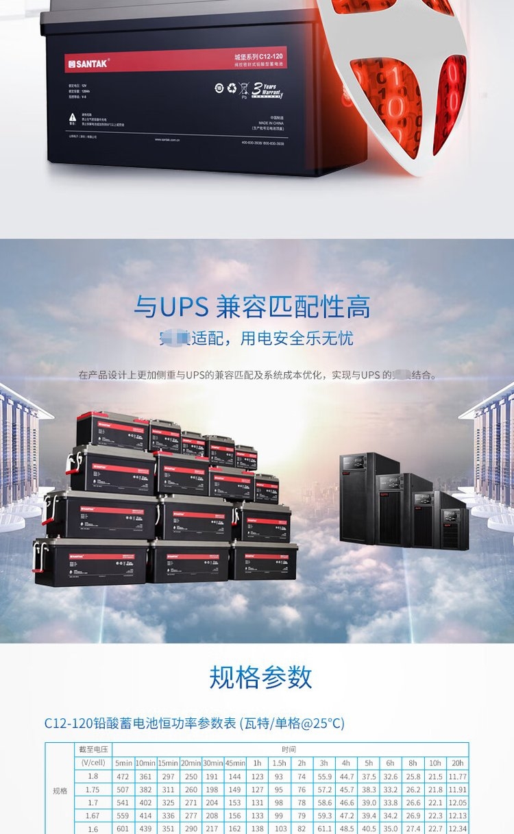 山特(SANTAK)C12-120原装蓄电池12V120AH UPS配套专用电瓶
