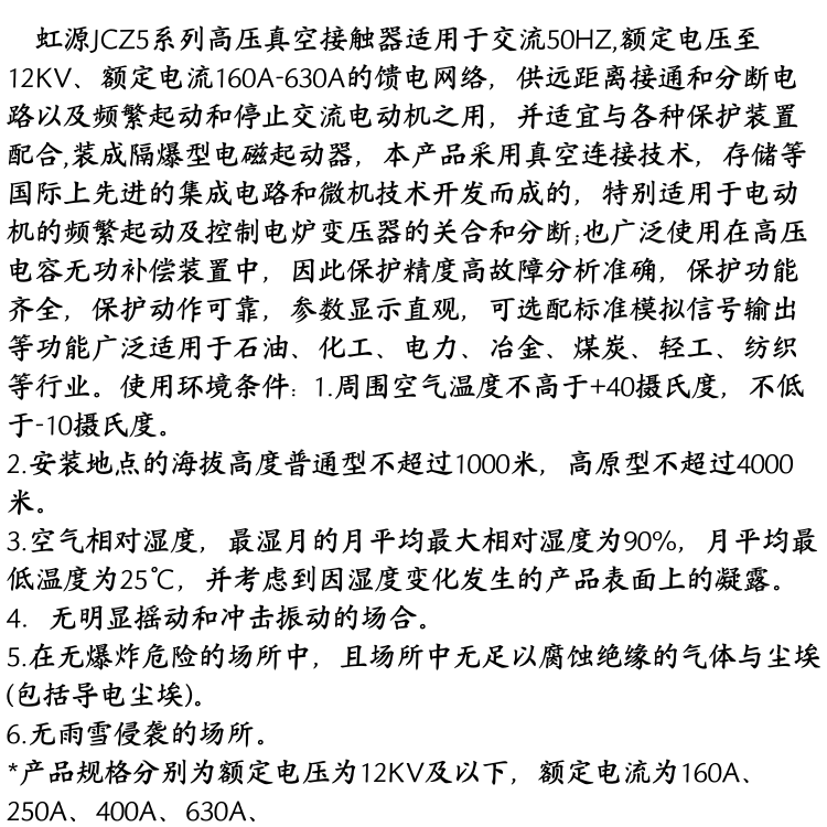VCBE(G)-160A/12KV 高压真空接触器 源头厂家