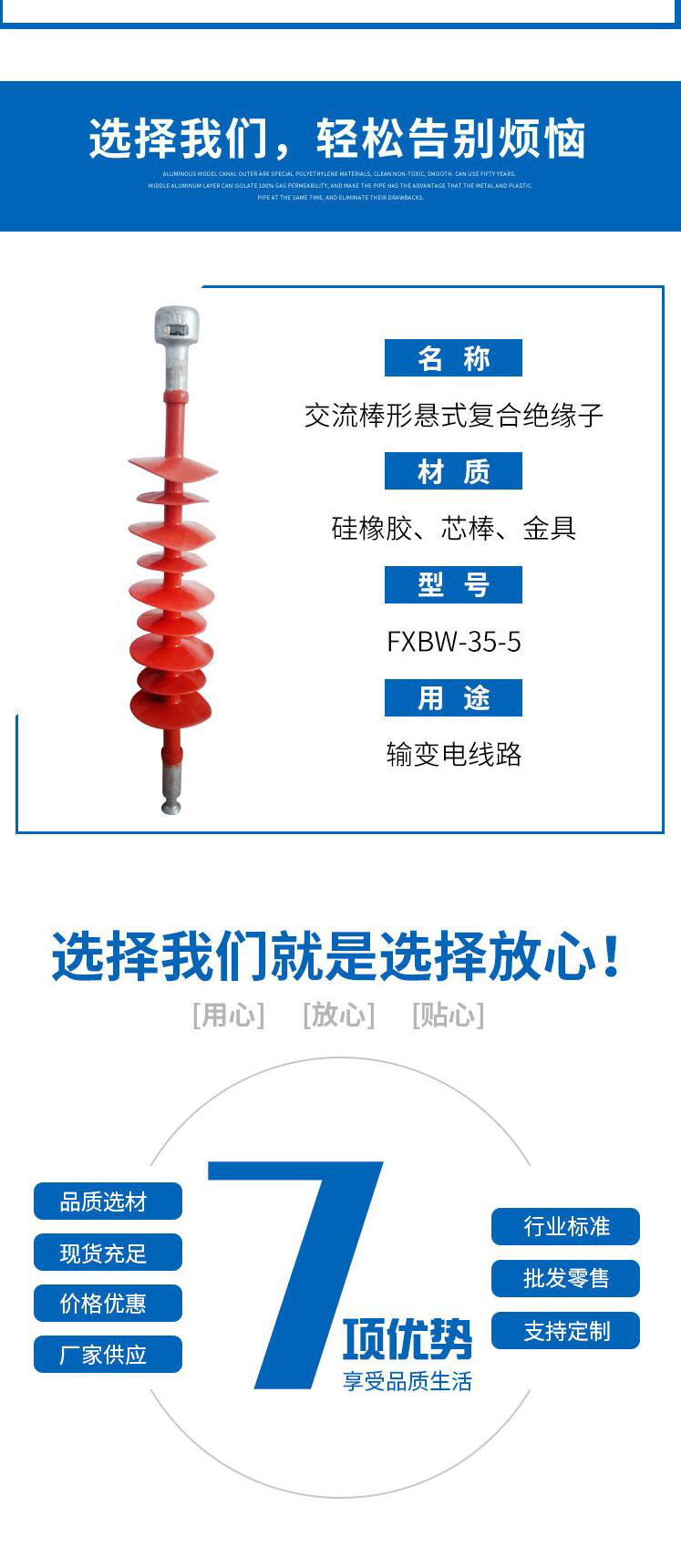 【厂家供应】交流棒形悬式复合绝缘子FXBW-35-5高架横担螺旋绝缘子