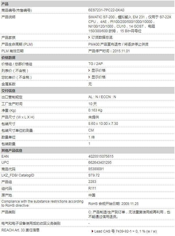 全新S7-200系列西门子6ES7231-7PC22-0XA0 plc模块供应商