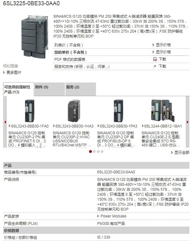全新G120系列原装西门子变频器6SL3225-0BE33-0AA0 30KW有滤波器