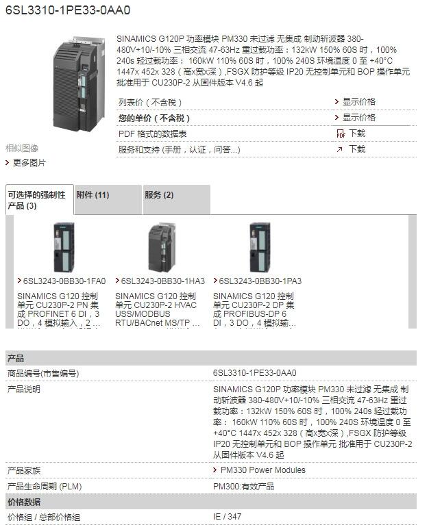 全新G120系列原装西门子变频器6SL3310-1PE33-0AA0 132KW有滤波器