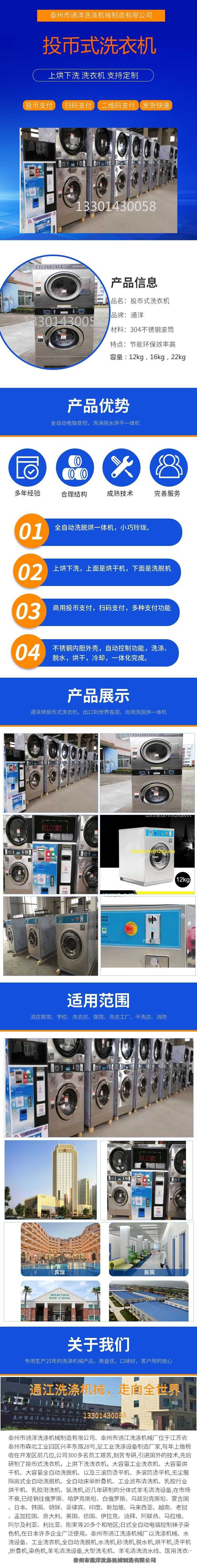 上烘下洗洗衣机 自助式商业洗衣机,适用于商业通途,自助式洗衣,带脱水功能,烘干功能,采用形式:上烘下洗。控制方式:全自动电脑变频。