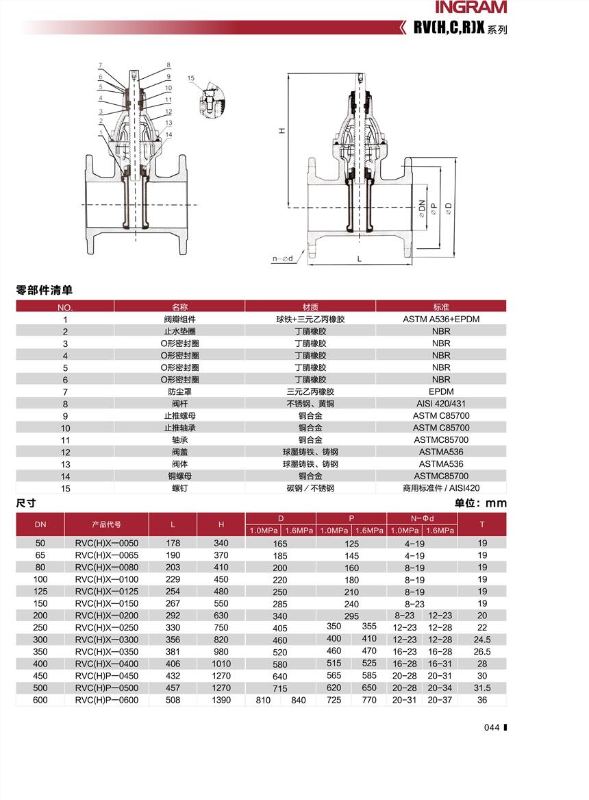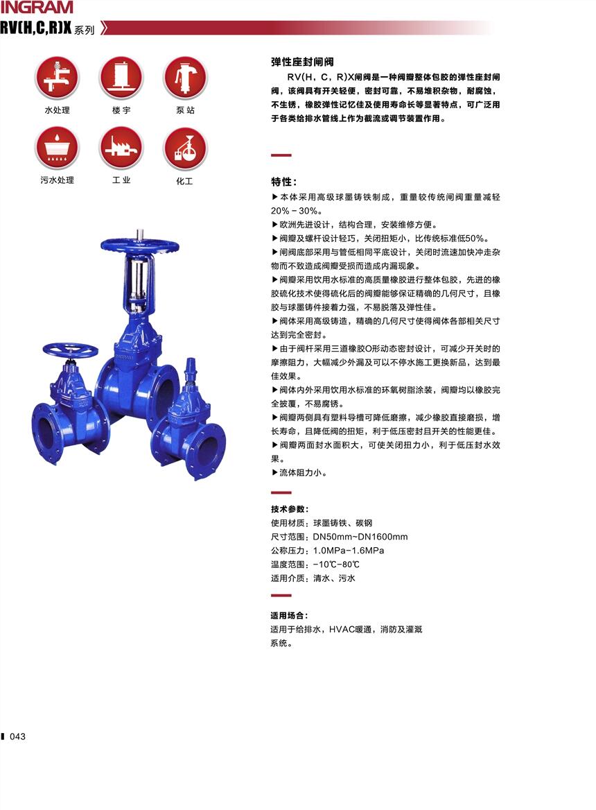 弹性座封闸阀,RVHX-16Q,软密封闸阀,暗杆闸阀