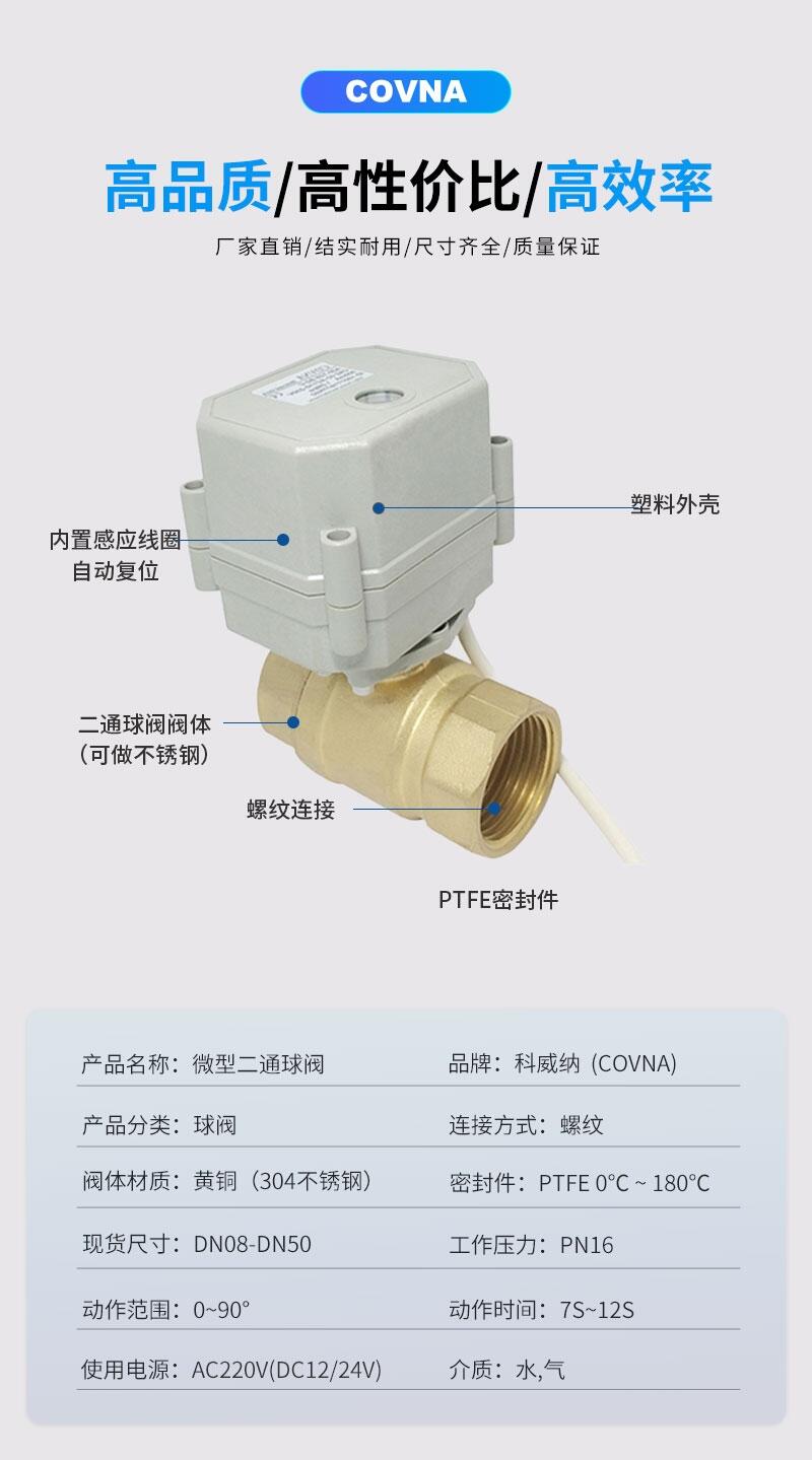 总而言之,微型电动球阀具有很多优点,可以满足各种环境条件下对流量的控制需求。可以替代传统的控制设备,特别是自动化系统,具有很实际的应用价值。