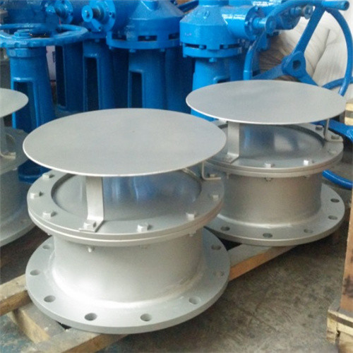 正面防爆阀由阀体、爆破膜、夹持器、阀盖、重锤等零件组成。爆破膜装在夹持器中间,与阀体用螺栓连接。系统超压时,爆破膜破裂,瞬间 泄压,阀盖弹起后重力作用下复位。本泄爆阀在更换爆破膜时需垂直向下掀起阀体及夹持器。爆破膜由用户根据工艺特性自备,主要适用于建材、冶金、石油、化工等行业部门。